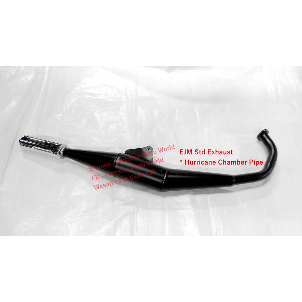 Standard exhaust @ honda hurricane 110 # plug & play only # solid & very nice sound # suitable to use with standard footpeg # designed to improve motorcycle .